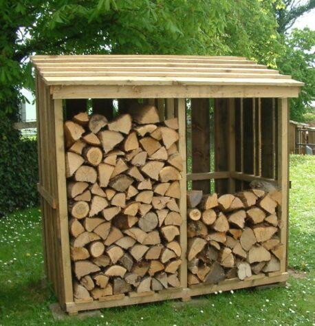 Double Bay Logstore with partition to allow you to divide dry wood from green. Ideal for storing your firewood. The perfect wood storage shed.