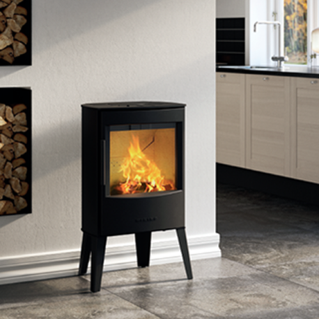 WIKING Mini 2 in black is a stylish and environmentally friendly 4.5kw wood-burning stove for smaller homes. The tall gently splayed legs certainly set this Mini 2 apart from the ordinary and give it a stylishly elegant look that delivers real presence whether it’s installed free-standing or set within a good-sized fireplace opening. The door is equipped with a large glass window that ensures an optimum view of the flames, including ®Wiking ®Automatic control for an efficient burn. This stove is available at our Dean Prior showroom, TQ11 0LS.