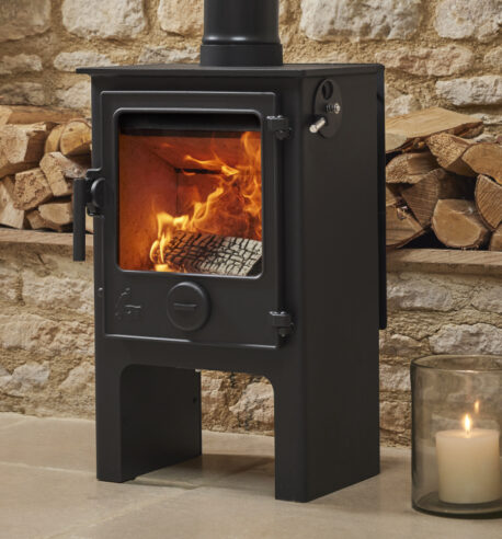 WIKING Mini 2 in black is a stylish and environmentally friendly 4.5kw wood-burning stove for smaller homes. This small wood burning stove has a classic rectangular shape and with its slightly curved sides it has a modern expression. The door is equipped with a large glass window that ensures an optimum view of the flames, including ®Wiking ®Automatic control for an efficient burn. – NB Due to the proximity of the fire chamber to the floor this particular version, The Wiking Mini 2 Plinth is not suitable for placing on a 12mm hearth.