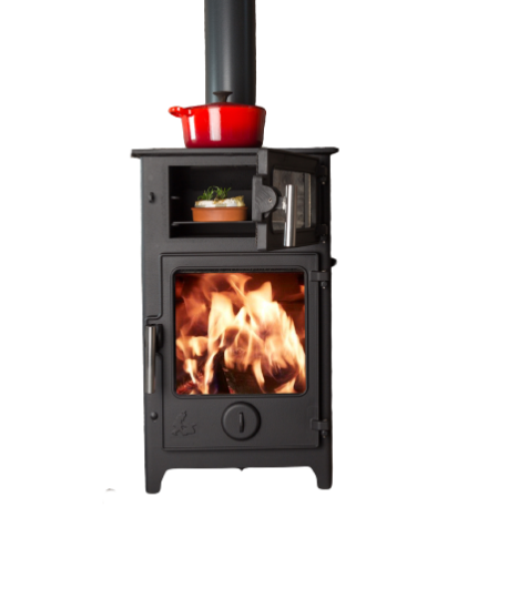 This new ex-display Dartmoor Baker 5 Eco 5kw wood burning stove with an integral oven above the fire box utilises the heat from the fire to cook or bake delicious food. The Baker 5 Eco has a removeable cleaning plate located inside the oven, this provides cleaning access for sweeping the chimney, check your sweep is happy to sweep through this access before purchase. One item only available, viewing at our Dean Prior showroom.