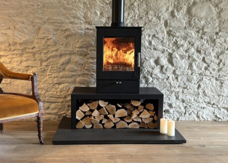 The Hwam Steel Bench is ideal when you want to raise your wood-burning stove from the floor.  A bench height of 33cm offers an excellent view of the flames, in addition your wood can be stored underneath.  The steel bench has a stylish matt black finish.  -STEEL BENCH: From £265.00 Inc Vat